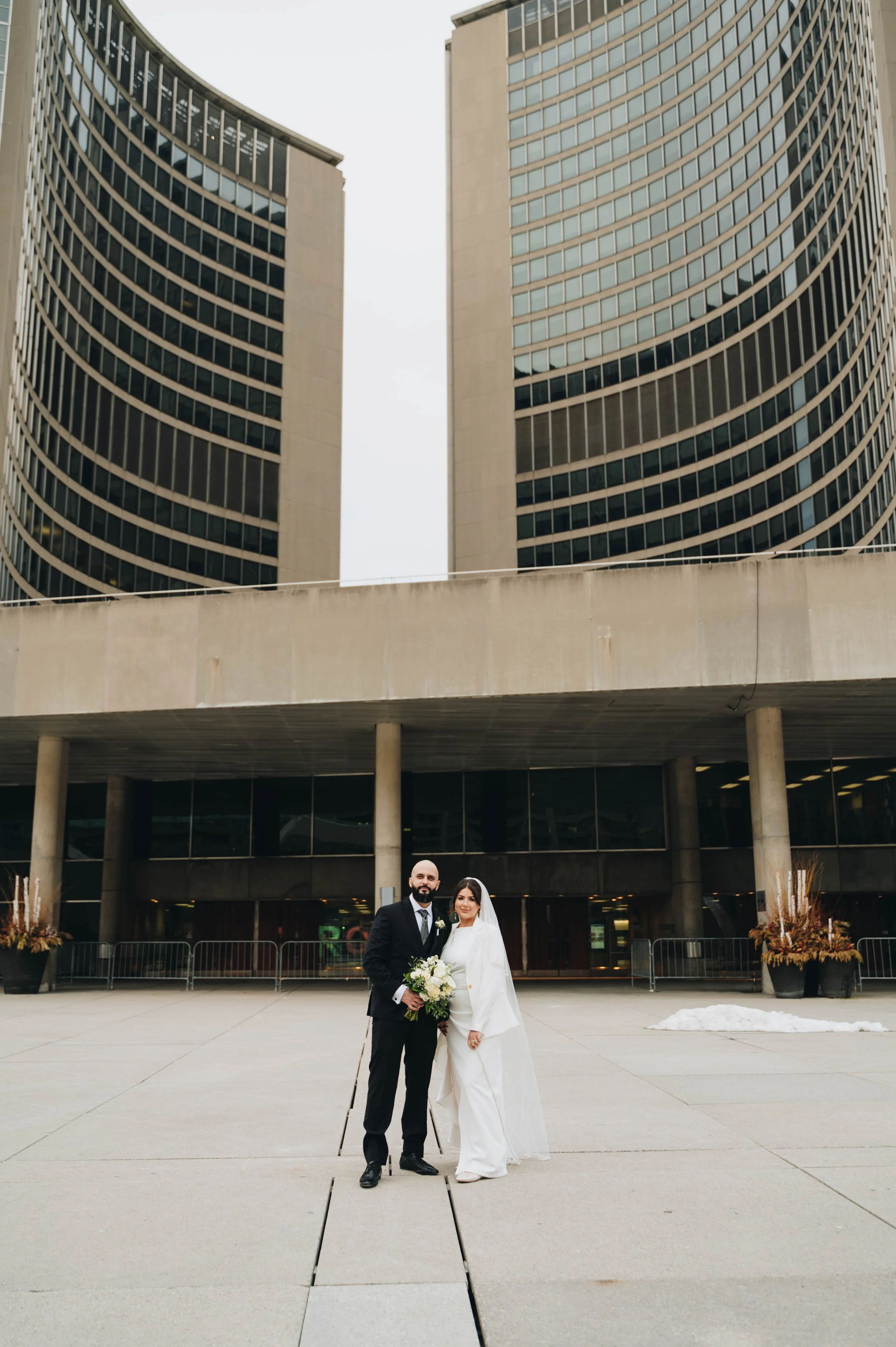 A & K’s wedding was an intimate ceremony at Toronto’s City Hall surrounded by their families and closest friends, followed by a quiet dinner at a restaurant in downtown Burlington.