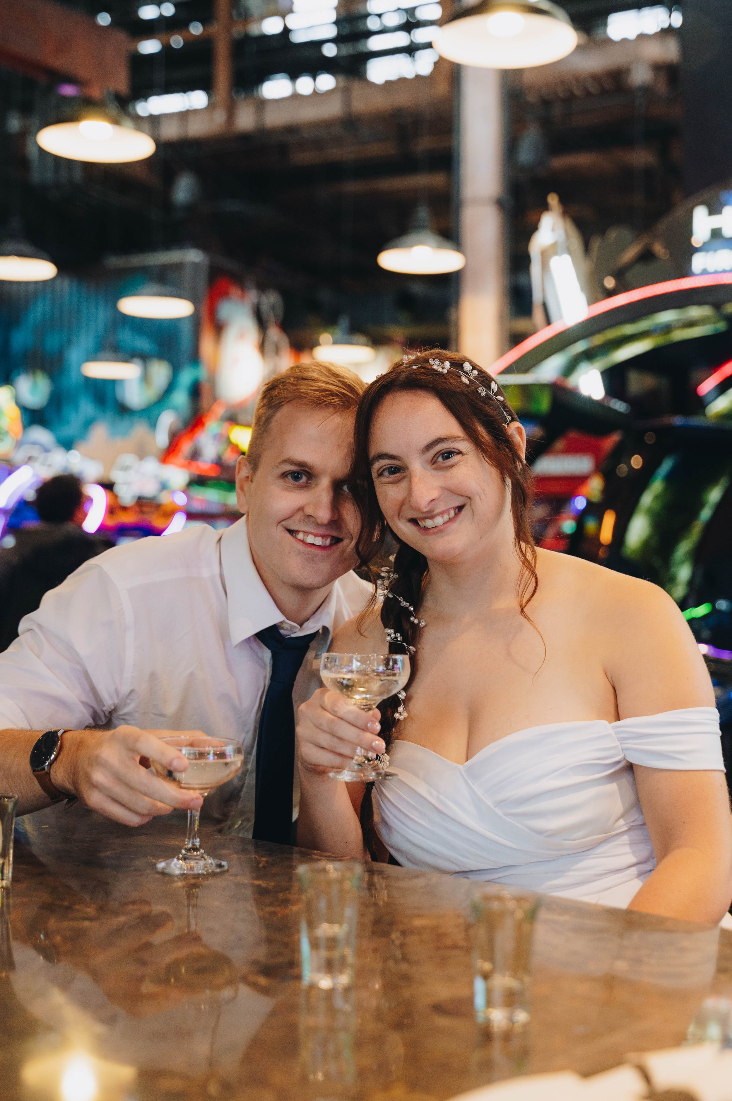 S & J’s self-described “anti-wedding” Toronto elopement was all about storytelling: After picking up their marriage licence, they exchanged vows at Cherry Beach in front of two witnesses, and spent the rest of the day enjoying the activities they love together.